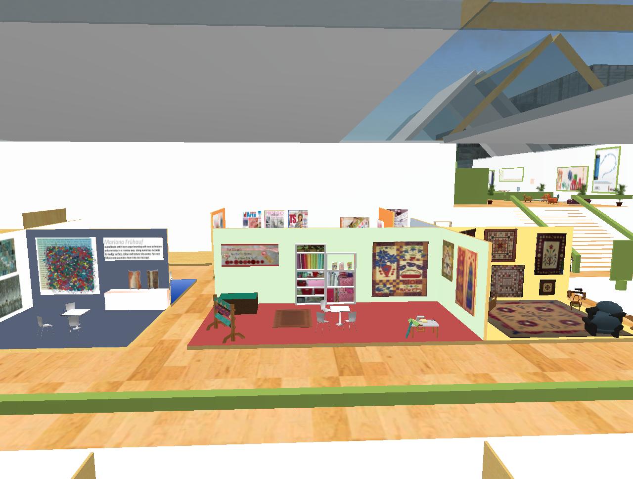 Collaborate with co-workers in the largest online 3D digital world. The Be.needlework Land built-in communication and design tools allow you to form collaborative relationships, interact with your freinds, and create and show Quilt objects with realistic physics.