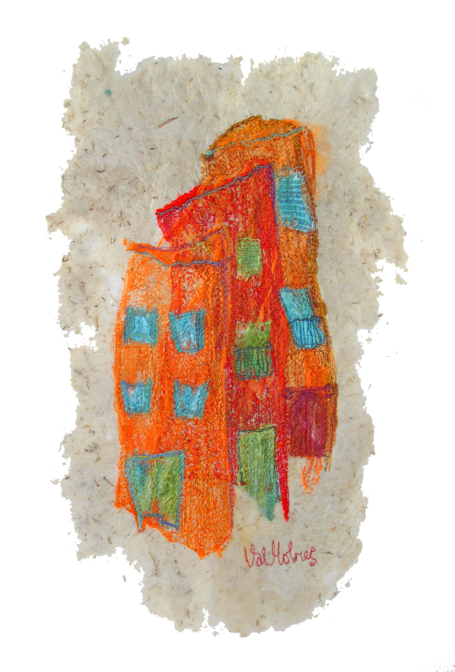 Silk fibres were embellished into the areas to represent the windows and doors.