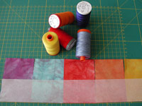 Right sides down, lay the 5 pieces of fabric next to each other .Press the vliesofix onto the lower half of the fabric pieces.