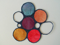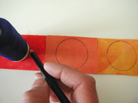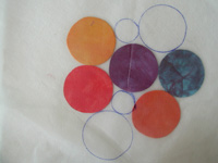 Spray a bit of adhesive Spray 505 on the tear-away stabilizer .Arrange fabric circles close to each other . Draw additional circles on the tear-away.