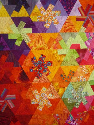 RAMONA CONCONI info@quiltingbee.ch I started with the traditional patchwork in 1984 in Nyon. I’ve always been keen on all types of textile activities, such as knitting, weaving, wool spinning, felt and then I started doing patchwork that enables me to work in a very spontaneous way, without rules! My strength point is matching colors. I really like Mirò, Paul Klee and Matisse’s paintings where shapes and colors come to life creating deep and moving effects. I’ve never been good at painting but better with the sewing machine. For this reason I really like creating textile paintings using plain fabrics or some others dyed by me, where the shapes and their role in the space are the main characters! Besides my commitments as artist and textile art teacher, I’m chairman of Quilt Art Lugano committee that organized this contest in June 2007 with a great success. I’m a member of the Swiss Patchwork Association (patChquilt) where I collaborate writing the Italian version of the bulletin and also that for the Italian Association (Quiltitalia). I collaborate also as free lance technician with the English/French magazine Magic Patch and with the company Aurifil for which I test the threads and I’m promoted as artist.
