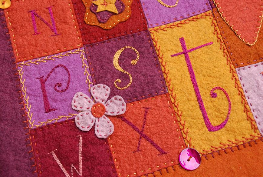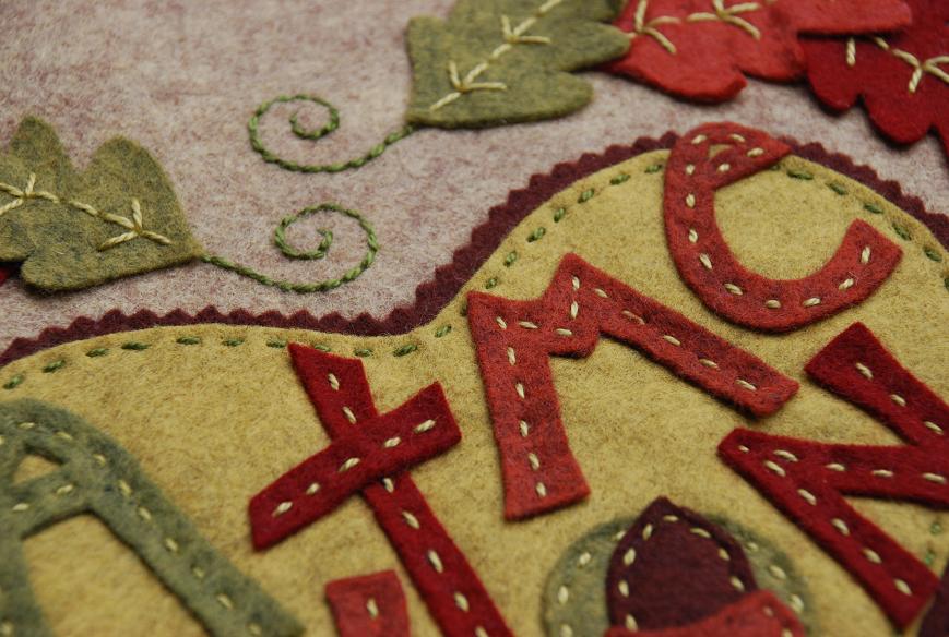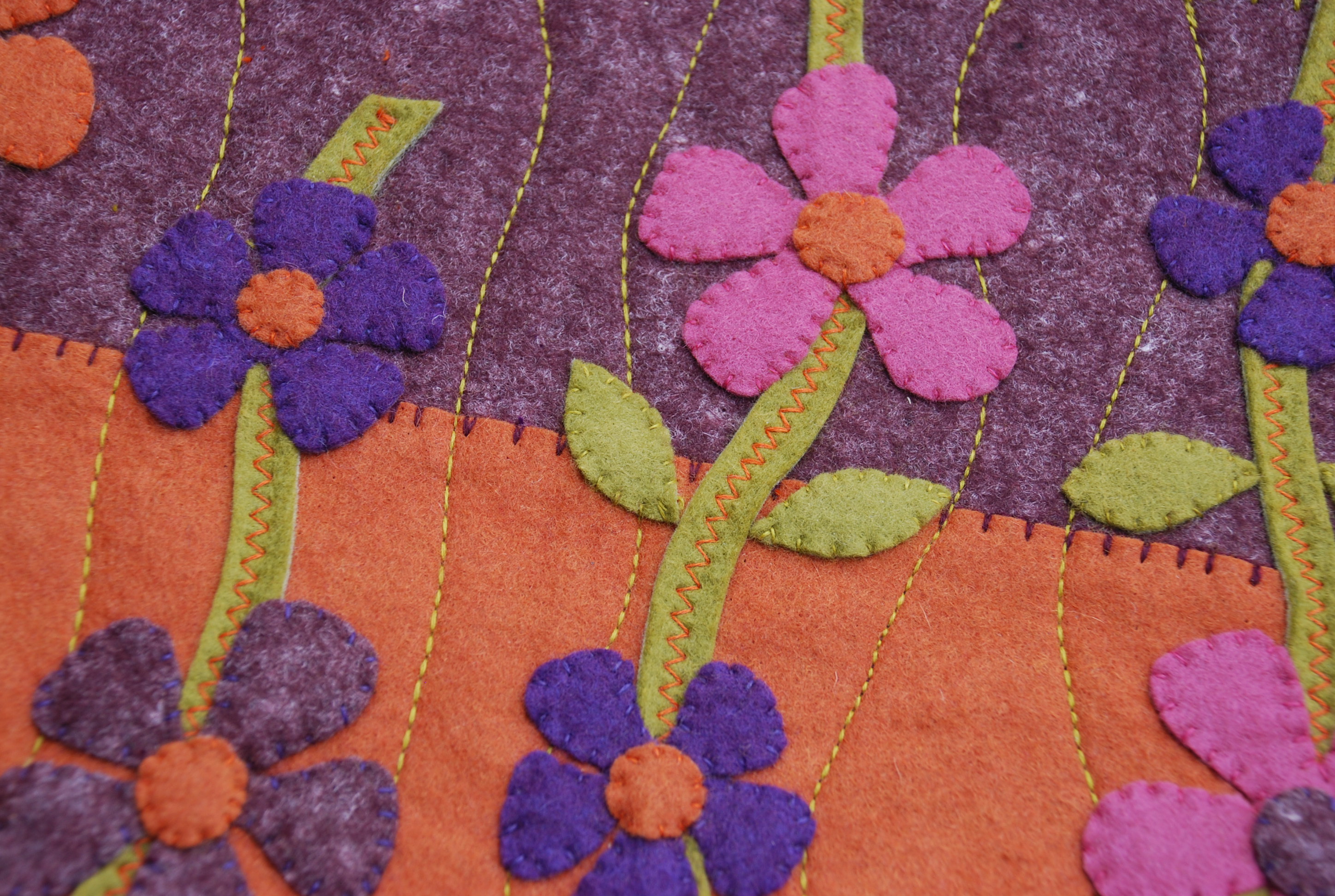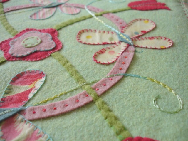Many of my designs are simple decorative cushions or banners combining wool felt appliqué and pearl cotton stitching.