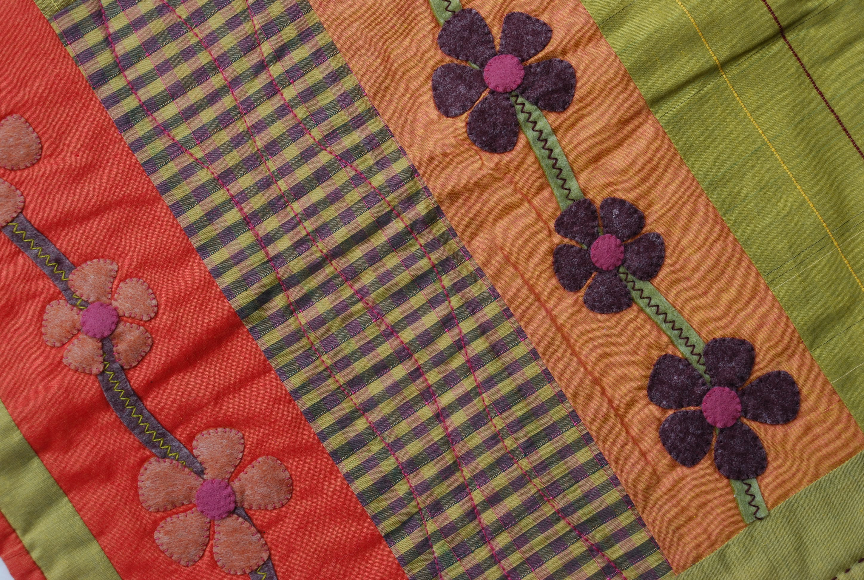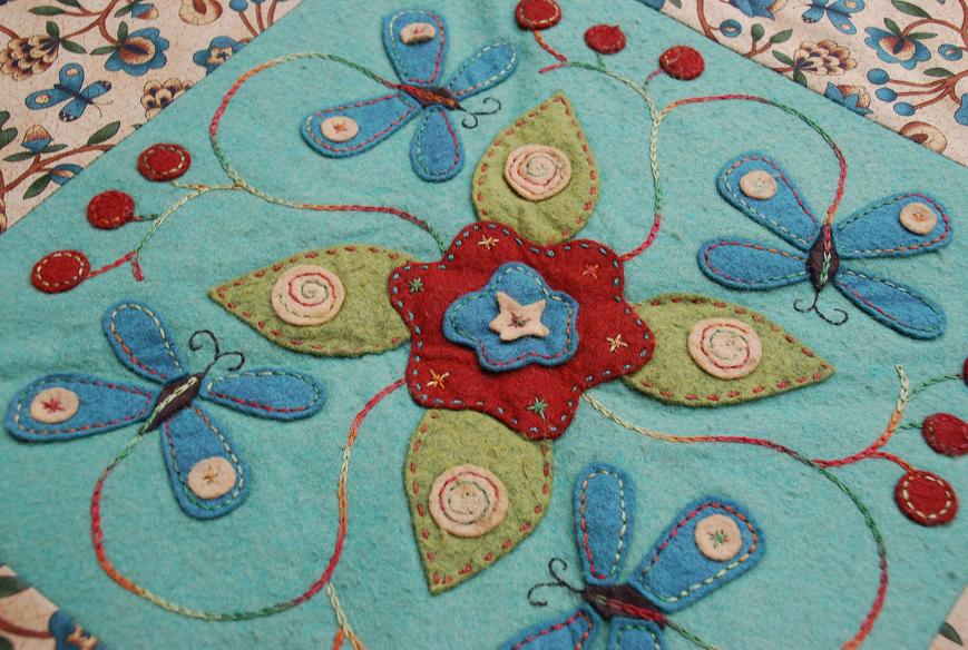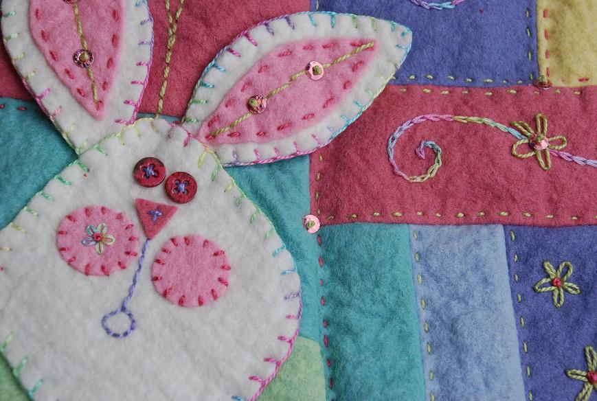 In my more recent designs I have started mixing woolfelt with patchwork fabrics to create mini-quilts incorporating traditional hand embroidery.