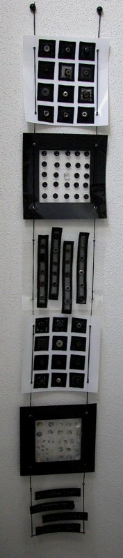 Gisèle Acker : ” When I started with traditional patchwork, I discovered that anything can be recycled. Used material, worthless objects, as long as somebody is interested in, can become a piece of art.This is why everyday objects become my main source of inspiration. I work only by instinct without following any rules in particular. I need to be close to the subject, enhance it and give it life. I like to play with colours, textures, as well as with volumes, without neglecting the importance of empty spaces and transparencies, giving so an impression of freedom to the materials I use.