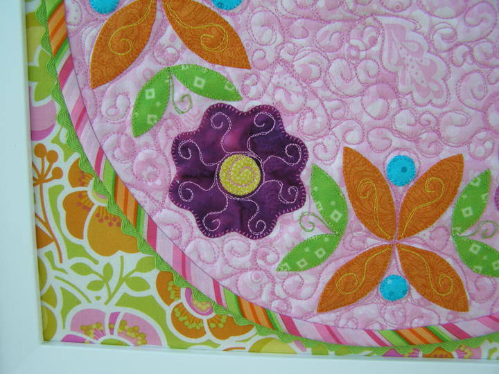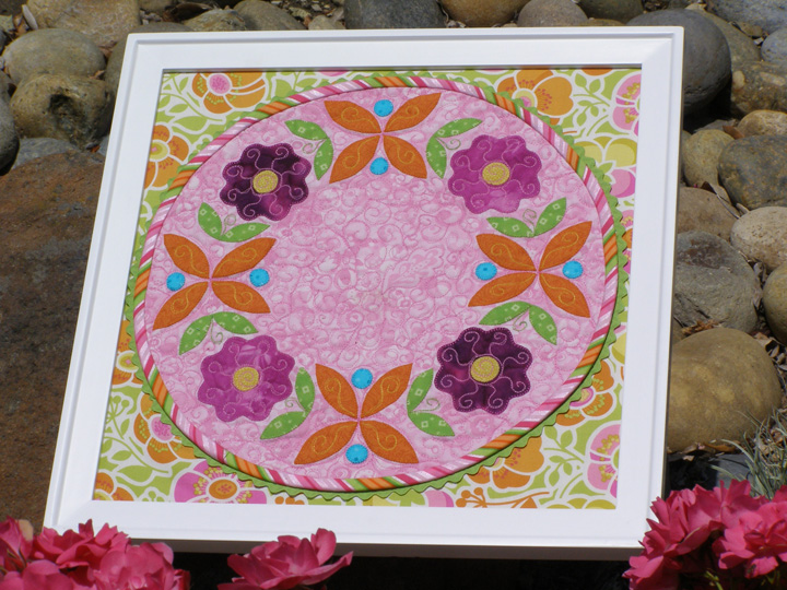 I am delighted to share Annie’s work with you. Her love of color creates spectacular results in her quilts. Her “Rose Ring” project is beautiful and she has a unique way of using it, in a frame!