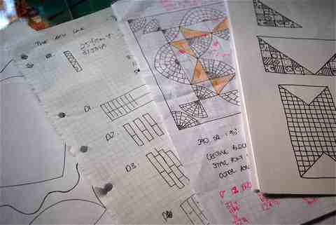 Frequently the idea I started out with turns into something completely different, but that’s part of the fun. When I’m designing for a book and I have to actually SHOW someone what I’m thinking about (yikes!), I use graph paper and sketch blocks out and colour them in with felt tips or coloured pencils. That’s what I did with the quilts for my fourth book – although not all of them have turned out as planned, there are always deviations.