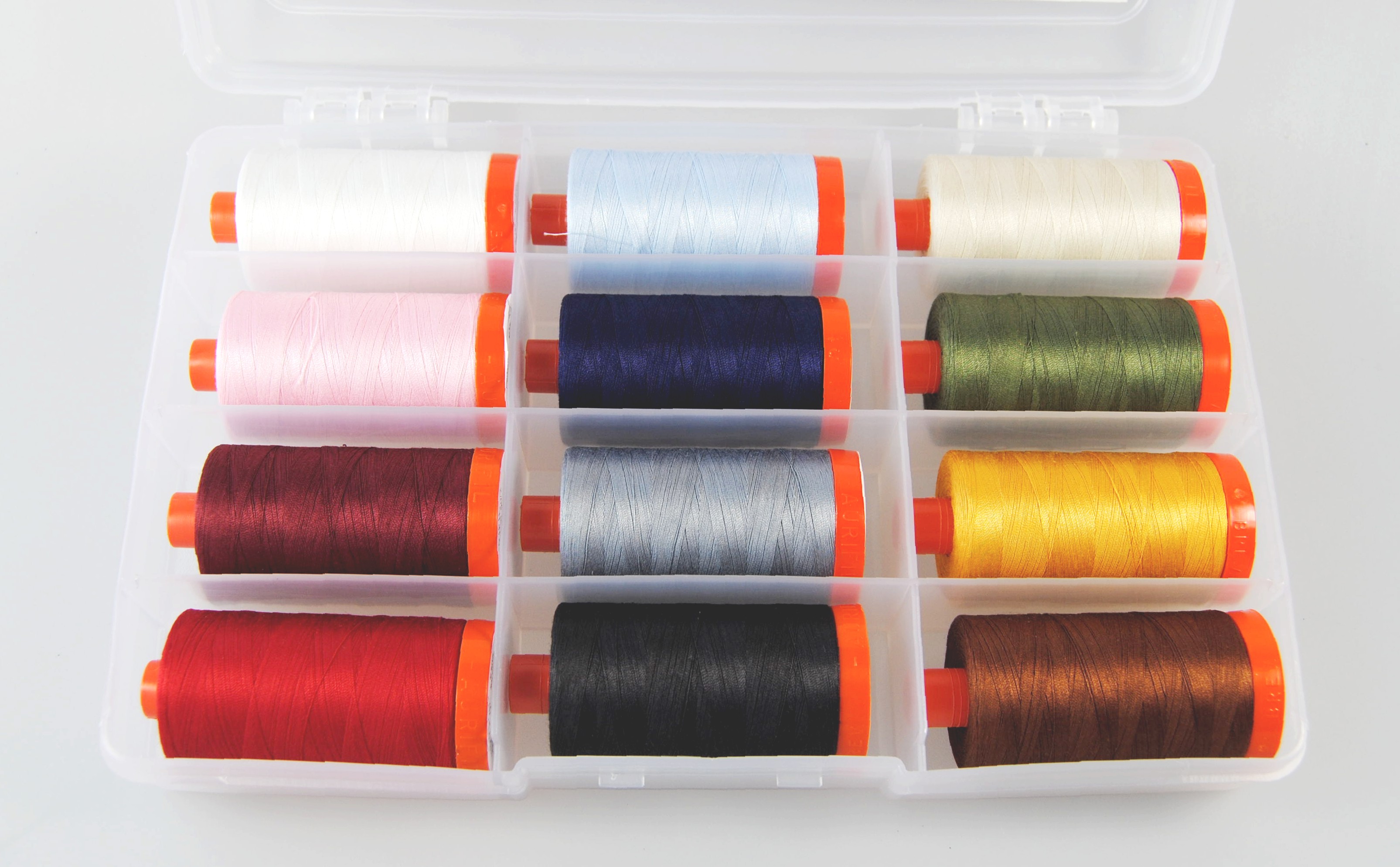 The collection is 12 large spools of the finest 50wt cotton thread in rich wonderful colors that would be the perfect addition to any sewing room.