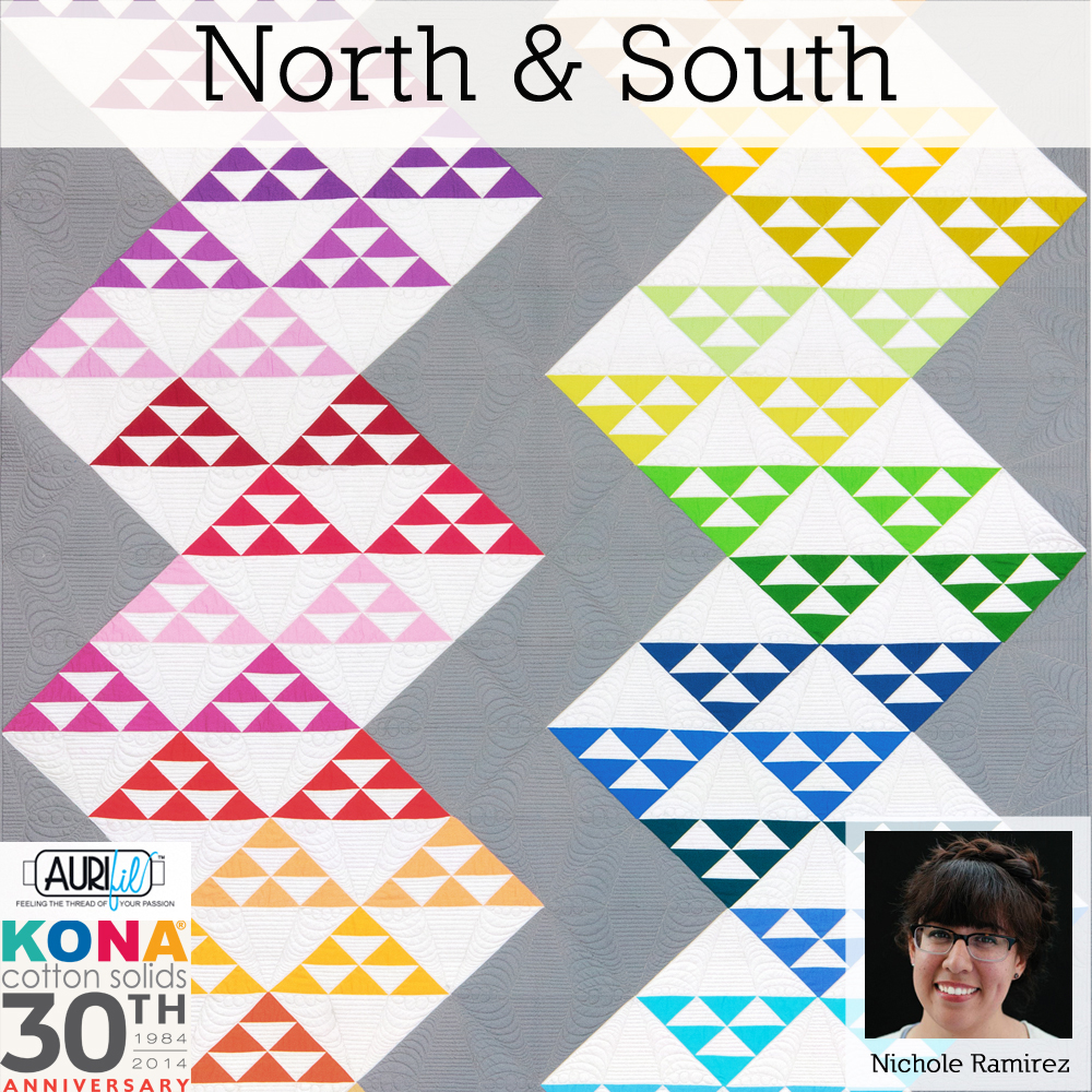 Today’s quilt , North & South, was designed and made by Nichole Ramirez.  Nichole works for Robert Kaufman in Marketing.  Many of the great people that work for Robert Kaufman are also incredible quilters!  This stunning quilt was displayed in the Aurifil booth during International Quilt Market.