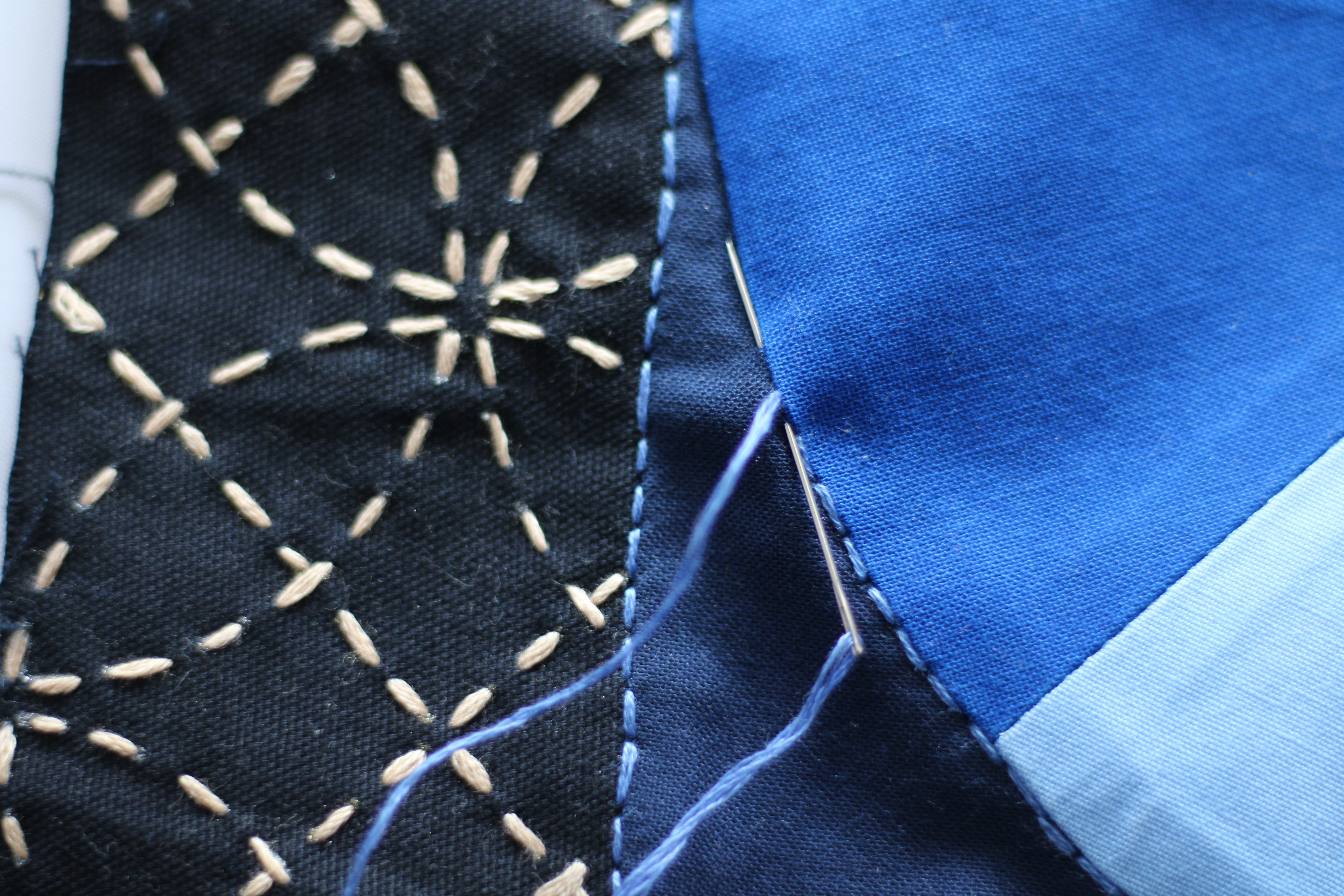 Note: Sandra hand stitched the sashiko on her border fabric, it is stunning!