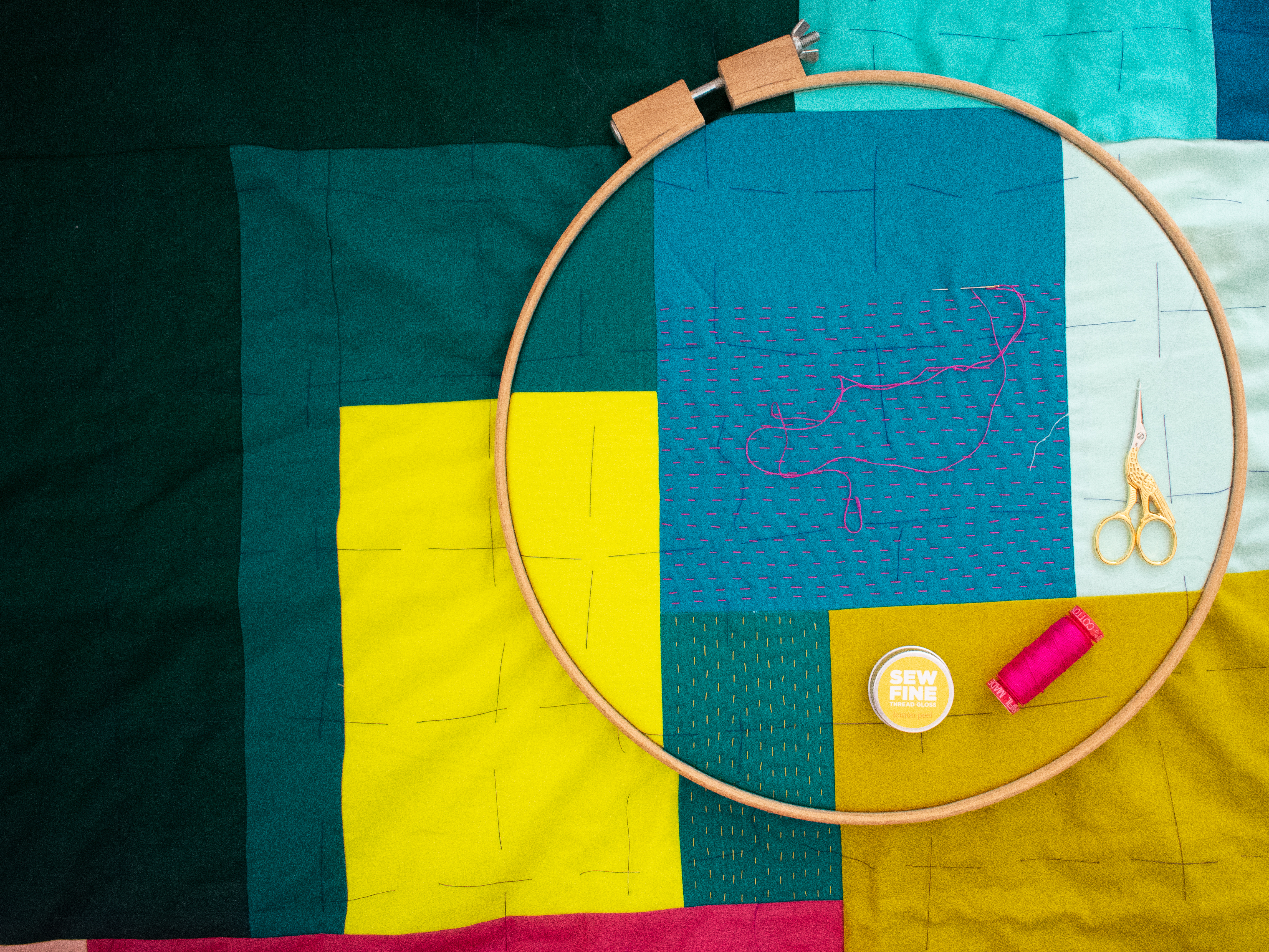 - Hand Quilting How-Tos & More by Broadcloth Studio – Amanda has put together how-tos for beginners and seasoned hand quilters to try adding some extra special #quiltbroidery stitches to your next project. Plus, she’s shared what’s in her hand-quilting toolkit (spoiler alert: there’s some Aurifil thread in there!).